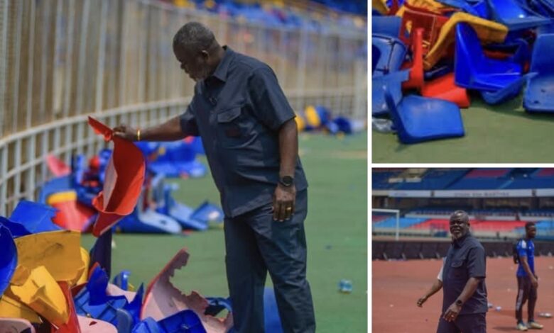 📌 Objectif : constater de visu les dégâts occasionnés après les actes de vandalisme perpétrés par certains supporters à la suite de la défaite des Léopards (3-2) face au Sénégal.