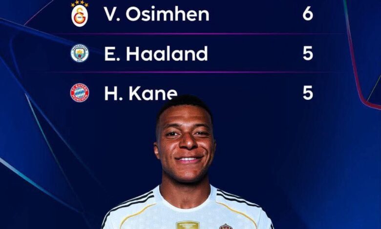 🔴🆕 Après la 5ᵉ journée de Ligue des Champions, Kylian Mbappé occupe la première place au classement des buteurs.