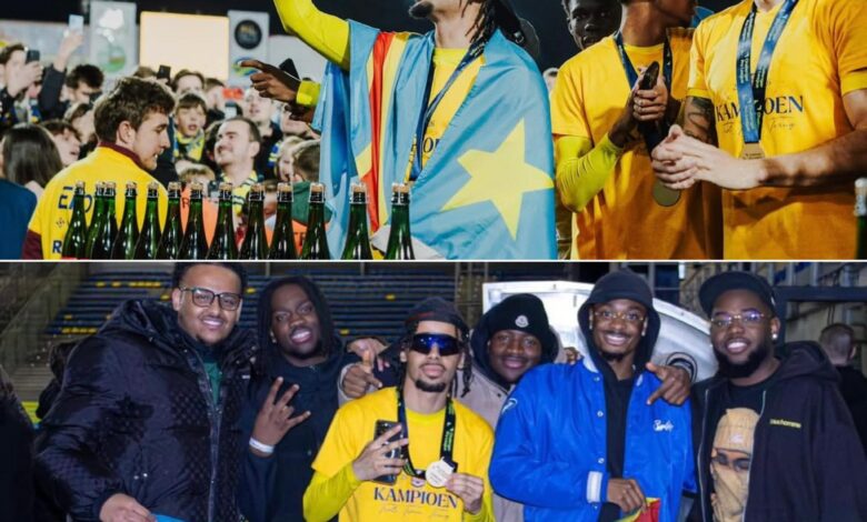 🚨 Noah MAWETE a célébré le SACRE de Beveren et la montée en D1 belge avec le drapeau de la RDC accompagné de son entourage ! 🇨🇩🙌🏾